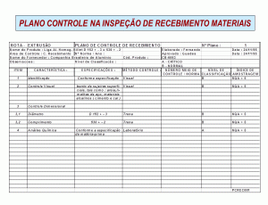 PLANO DE CONTROLE DE RECEBIMENTO